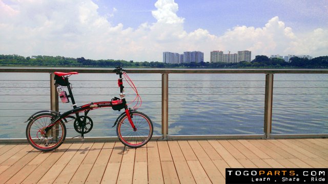 STOCK My first foldable bike to try out the hype about foldies. At S$350 - S$400, the Raleigh Broadway 20 is one of the cheapest 'branded' bike in the market. Comes in black, red or orange colours. The paint-job, though not as inspiring as Tern's or Dahon's, is beautifully done in hi-gloss automotive finishing.Came stock in a full aluminum frame, plastic folding paddles, Shimano SL-TX50 7-speed shifter, Shimano Tourney rear derailleur, Shimano cassette, Avenir saddle, Tektro v-brakes & Promax brake levers, Promax headstem, aluminum seatpost, front & rear fenders and a Dahon licensed folding style.However, due to the limited 7 speeds, hill-climb isn't easy and acceleration is lacking. The stock rims are also heavy and uninspiring. At 12.5kg, the Broadway 20 certainly isn't the lightest foldie in the market. With a basic but reliable and sturdy frame, this bike is made for daily commute. I've rode this bike on the roads, parks, and even Pulau Ubin's rocky pathways and it never fail me. CURRENT MODIFICATIONSNot willing to leave the bike stock, I decided to personalise the bike to my liking. Managed to lighten the bike to around 11kg with current mods.• Shimano 9-speed Alivio Shifters• Shimano Alivio 9-speed Cassette• Shimano Alivio Rear derailleur• KMC red chainset• Ergon GC2 grips and barend handles• Weinmann Star 18 red rims with Novatec hubs• Maxxis Overdrive Elite tires • Jagwire cables in red housing• Red Velo saddle• MKS detachable aluminum paddles• Full aluminum anodised black seatpost• Custom red decals