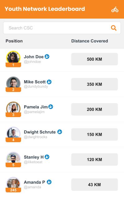 Track your personal progress, current ranking and monitor your activities synced automatically from STRAVA on the Leaderboard.