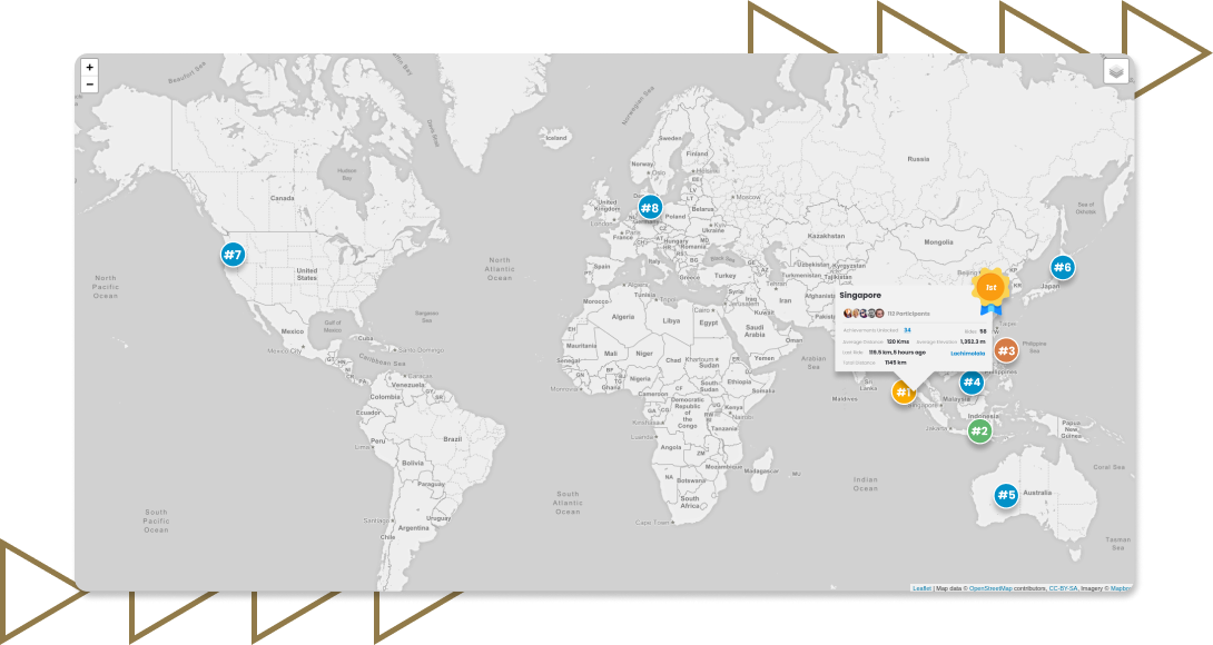 Form a team of 5 to represent your nation for #TOGORIDE2023! Track the performance of participants from countries all over the globe on the World Leaderboard. Countries will be ranked according to the average distance per cyclist.
